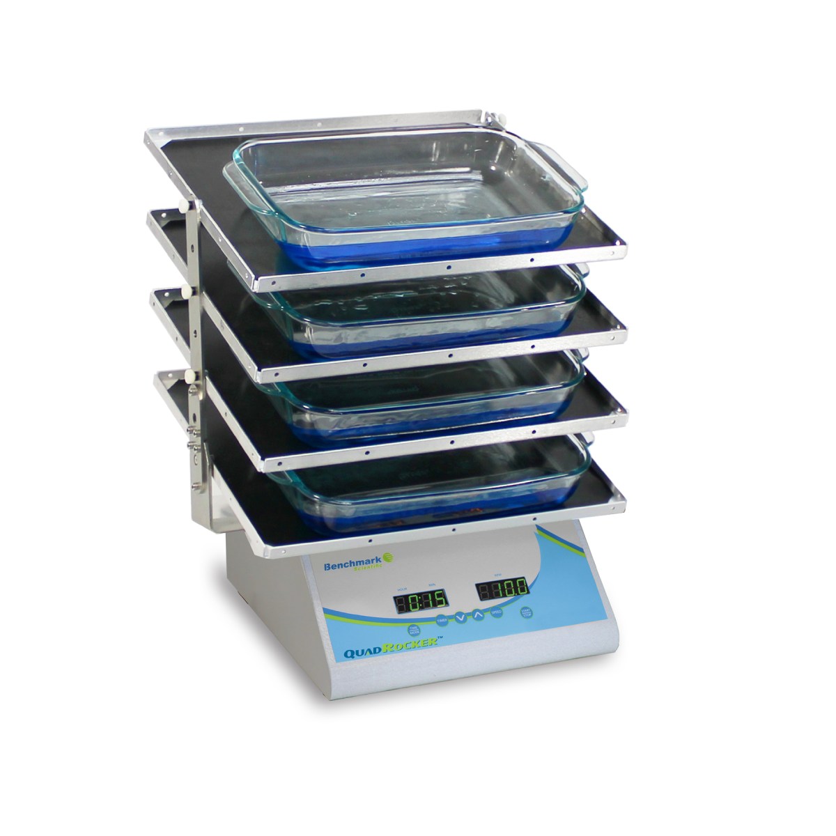 Benchmark’s QuadRocker features a unique, tiered attachment system that accepts up to four platforms. Unlike traditional single platform rockers, the QuadRocker includes a base level as well as three additional stacking platforms, providing a total work-surface of over 750 sq. in.