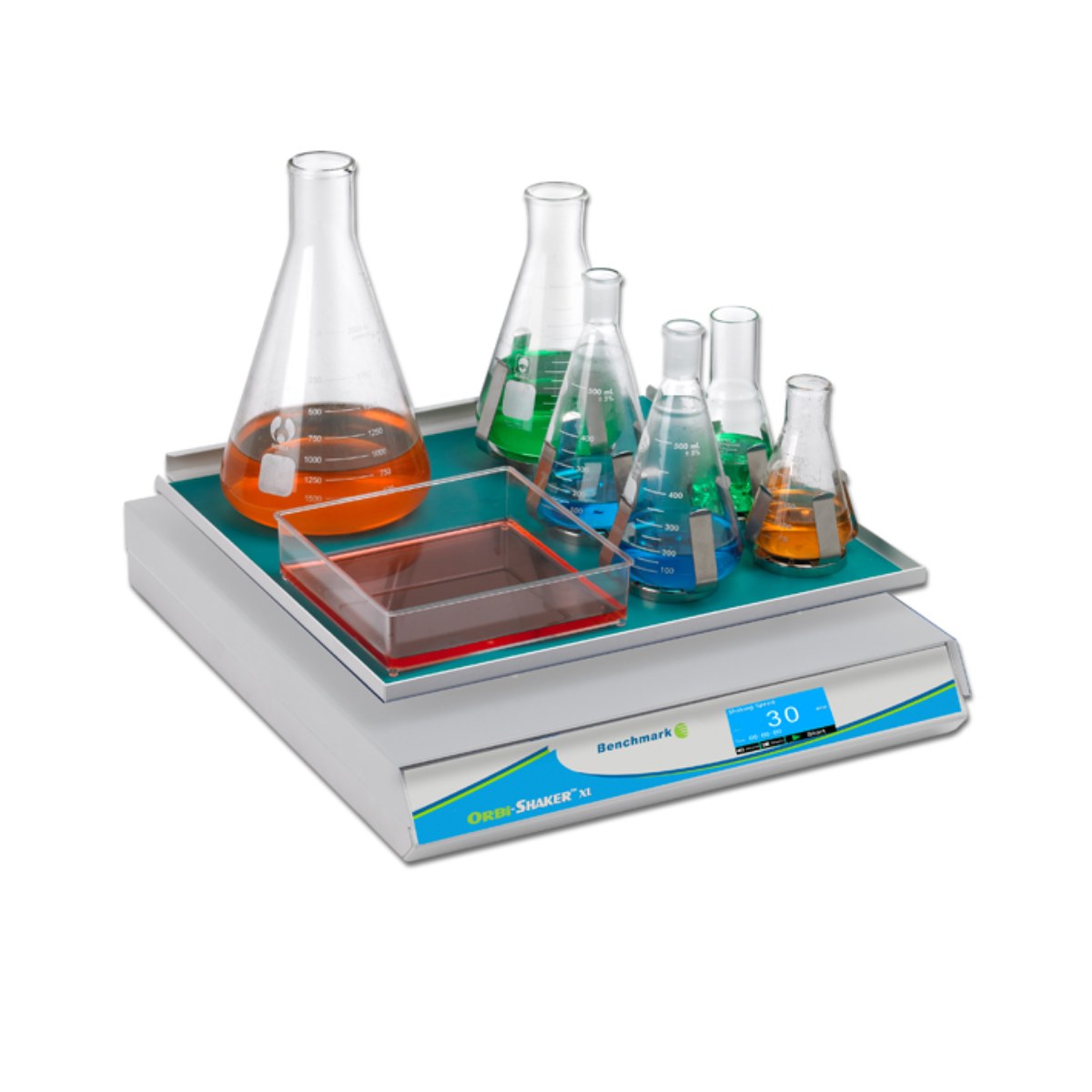 The Orbi-Shaker XL offers flask capacity that far exceeds that of most benchtop models. With a large 18 x 18 inch platform and a powerful, beltless motor drive, the Orbi-Shaker XL is capable of mixing up to five 2L flasks or nine 1L flasks simultaneously. The included, non-slip rubber mat platform is ideal for low speed applications, while the convenient MAGic Clamp™ platform is also available for high speed mixing of Erlenmeyer flasks, tube racks or microplates. The MAGic Clamp™ allows for instant flask clamp exchange without the use of tools, screws or any other hardware.